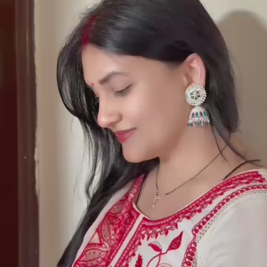 Style: Classic jhumka design with a contemporary twist. Occasions: Great for parties, weddings, festivals, or casual outings.