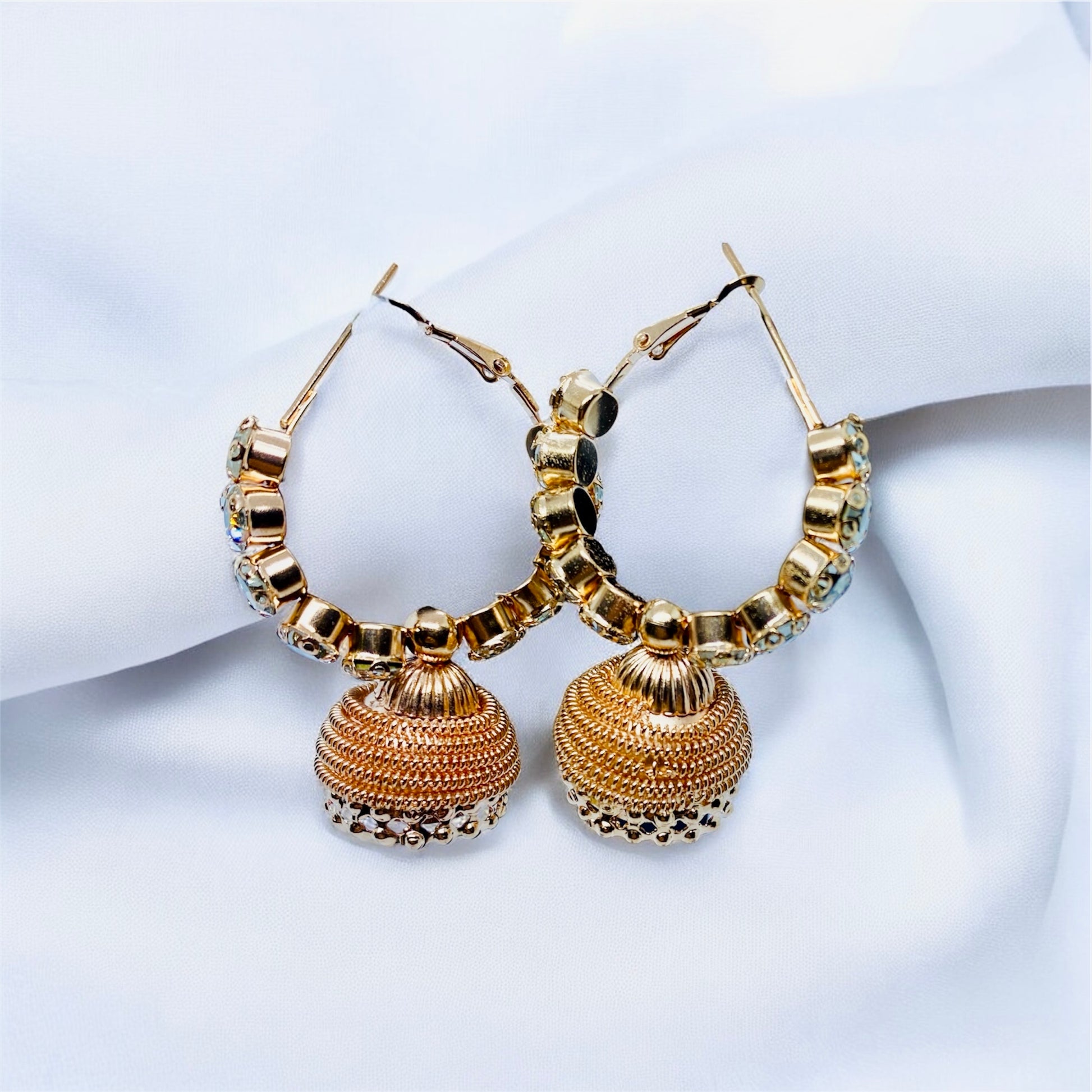 Rose Gold Jhumka Hoop Earrings with Crystal Accents